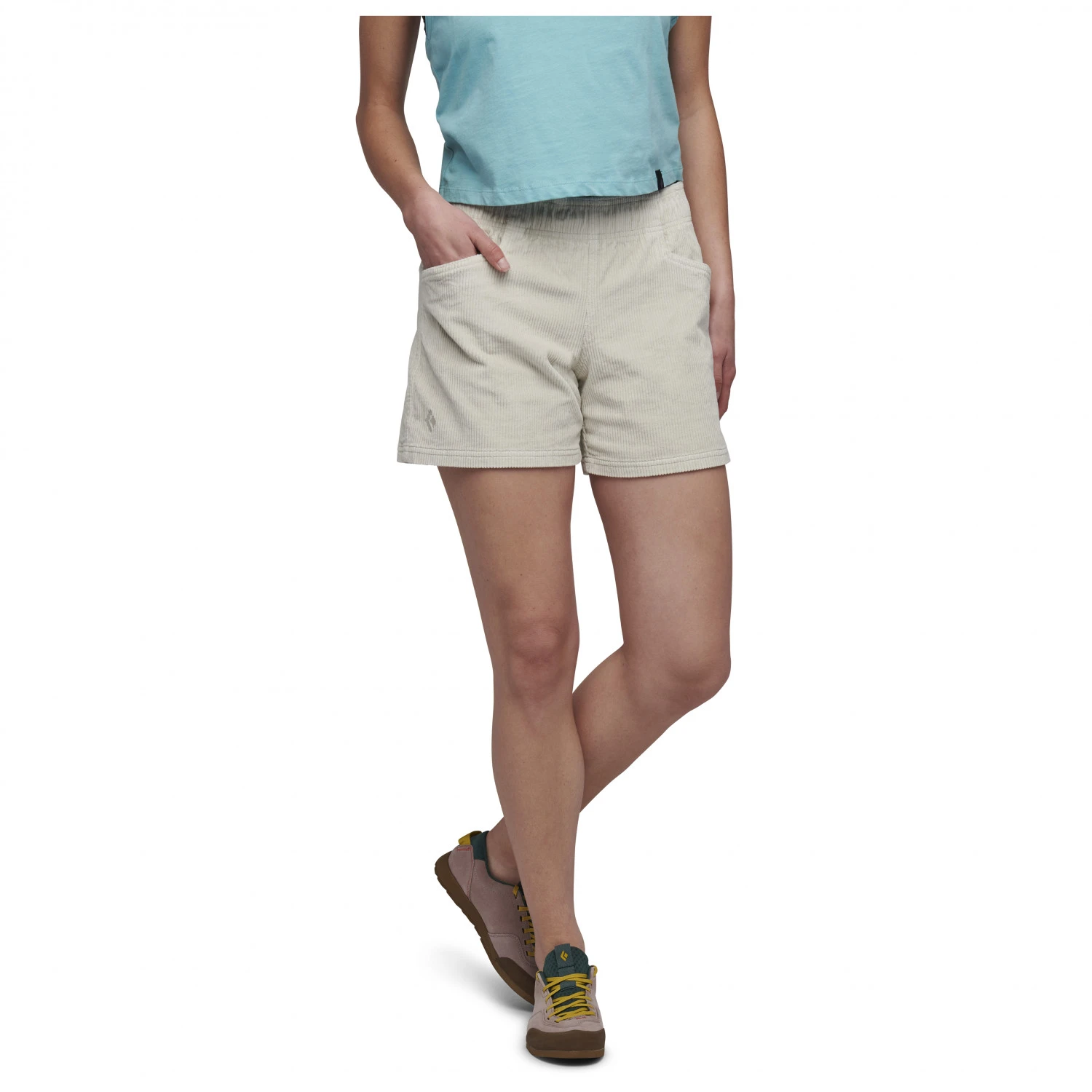 Die Women’s Dirtbag Shorts von Black Diamond sind erstmal coole Shorts, die Dich bei warmem Wetter schick kleiden. Aber sie können noch mehr: sie sind strapazierfähig und bequem, und eignen sich auch noch perfekt fürs Klettern! Denn durch den Elasthan-Anteil im Gewebe ist das Material schön stretchig, und ermöglicht Dir so perfekte Bewegungsfreiheit. Damit die Passform auch stimmt, und Dir nix im Weg rum geht, haben die Women’s Dirtbag Shorts einen elastischen Bund mit Kordelzug. Das ermöglicht angenehmen Tragekomfort, selbst mit Klettergurt. In die je zwei vorderen und hinteren Einschubtaschen kannst Du Kleinigkeiten wie Papiertaschentücher oder einen Riegel einpacken.