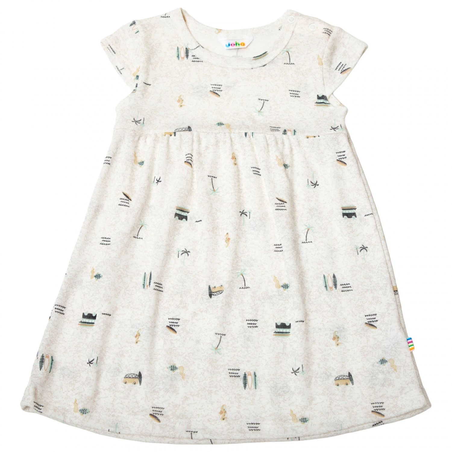 Luftig ist das Kleid Kid’s 47592 Dress with Short Sleeves von Joha! Der Materialmix mit Merinowolle und Seide ist angenehm weich, kühlt an warmen Tagen und leitet Feuchtigkeit ab. Zudem wird die Geruchsbildung effektiv verhindert. Mit dem Print macht das Kleid auch optisch einiges her!